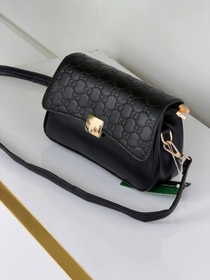 کیف دوشی طرح Gucci مشکی با طراحی لوکس و مینیمال، انتخابی ایده‌آل برای خانم‌هایی است که به دنبال یک کیف شیک، باکیفیت و مناسب استفاده روزمره و مهمانی هستند. این کیف از چرم مصنوعی مرغوب ساخته شده و قسمت رویه آن با طرح برجسته GG جلوه‌ای کاملاً شیک و متفاوت به کیف بخشیده است. قفل...